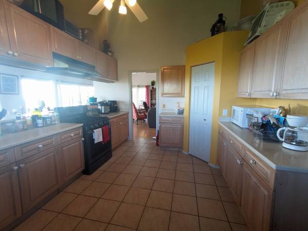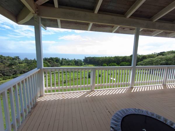 Beautiful spacious rooms on second floor, refuge of peace and privacy, hear the waves, high ceiling with sky light, wrap around broad balcony, expansive lawn, generous living room, modern kitchen, hardwood floor, comfortable temperature all year round. Ceiling fans in each room, shared wifi. 15 minutes drive to Hilo Medical Center.