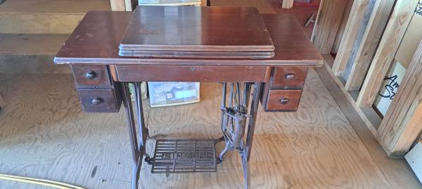 This 1940 Singer Treadle sewing machine is in its original 5-drawer cabinet!