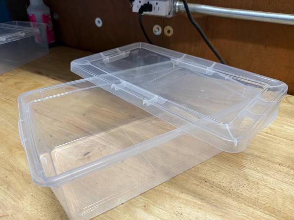 Iris clear storage containers 5 and 6 quart with lid. New still in box never used. Five quart pack of 20 with lid (100 total) $175 Or could sell by the box of 20 at $35...