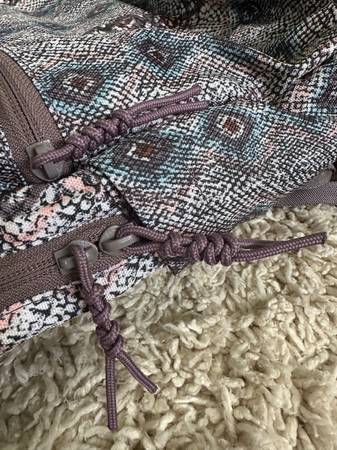Lightly used once for a couple days. Like new. Laptop zipper section. Two side, open pockets (waterbottle). 3 zipper compartments. No smoke, no pet home. Will delete once sold