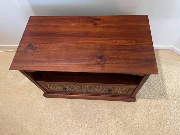 This table can be used in a living room, bedroom, or office. It has one large open shelf and one drawer that pulls out. It could be used as a table for a TV, with a DVD / CD player on the open...
