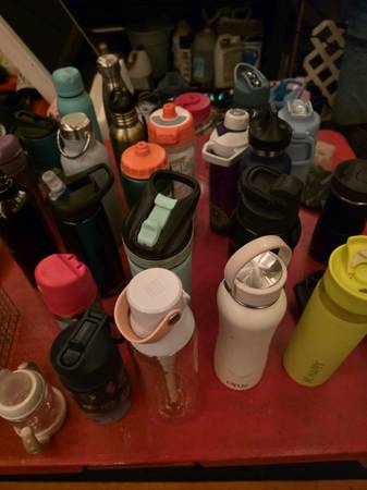 Assorted drink bottles with lids starting at $2 OR 3 Bottles with lids for $5 Yeti, Owala, Coleman, Stanley are $10 each Priced as marked