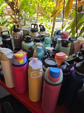Assorted drink bottles with lids $2 each OR 3 Bottles with lids for $5 Yeti, Owala, Coleman, Stanley are $10 each Priced as marked