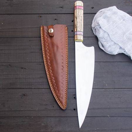 The blade of this Chef knife is the result of the saw-blade effect at microscopic level, allowing the blade to keep cutting while other blades have dulled. Knife maker hand forged the Blade of this knife is 1095 and 15N20 high steel true damascus steel with 512 layers