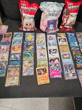 Pokémon cards lot selling as whole bulk 100+ cards is in mint condition lmk, and have 3 labubu's left still sealed