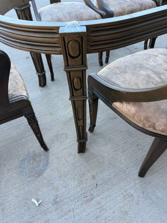 Oval glass table. Seats 6 comfortably in the upholstered accompanying chairs.