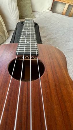 This is the new Kanile’a TRU-R bracing, ebony and mother of pearl appointments, and with a new deluxe gig-case. Plus strap button out of chrome.