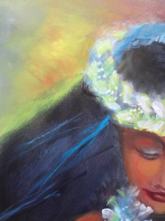 "Aloha Hula Leis". local Hawaii artist original oil painting on stretched canvas hand made, one of a kind painted in my studio in Honolulu. Welcome to come take a look Size 18" x 24" Shipping...