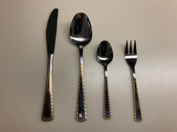 23/24 gold plated Stainless dinner ware set (58. Pc.) Solingen, Germany . —$100. Please leave return number when inquiring (must) and I will return call ASAP.
