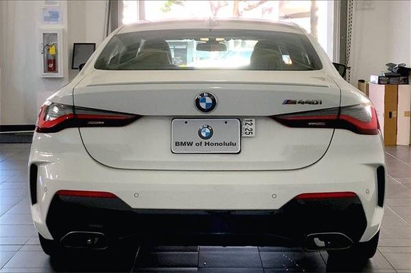 BMW of Honolulu proudly offers this beautiful 2023 BMW 4 Series M440i in Alpine White with Only 15054 Miles! The 4 Series is powered by a 3.0L I6 engine through a RWD system and an 8-Speed Automatic Sport Transmission. Call us at(808) 201-0788 to schedule a showing of this BMW right now!