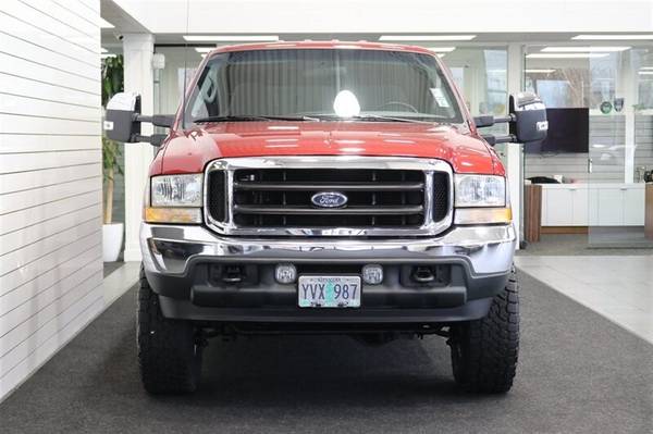 UP FOR GRABS IS A SUPER HARD TO FIND IN THIS SHAPE AND CONDITION AND LOW MILEAGE LOCAL OREGON ONE OWNER SINCE NEW CLEAN TITLE AND CARFAX CERTIFIED FRESH TRADE IN 2002 FORD F-350 CREW CAB LONG BED XLT TURBO POWERSTROKE 7.3L 4X4 WITH ONLY 134K MILES, LIKE NEW IN AND OUT, NO SIGNS OR RECORDS OF ANY ACCIDENTS OR DAMAGES EVER, NO MAJOR DENTS OR SCRATCHES AT ALL, LIKE NEW INTERIOR FREE OF ANY RIPS OR TEARS OR ANY BROKEN PLASTICS OR STAINS ON CARPET, ZERO ODORS. THE UNDER CARRIAGE OF THIS TRUCK IS 100% RUST & CORROSION FREE, NO SIGNS OF EVER BEING DRIVEN OFF ROAD OR IN MUD OR SNOW AT ALL. THE PAINT SHOWS AS NEW, ZERO CLEAR COAT FADING OR PEELING, THE INTERIOR FEELS LIKE NEW AS WELL AND SPENT ALL OF IT'S LIFE PROTECTED WITH CARHARTT SEAT COVERS, 6-PASSENGER SEATING, ADJUSTABLE TOWING MIRRORS, TINTED WINDOWS, REAR SLIDER, RUNNING BOARDS, FOG LIGHTS, UPGRADED HEAD UNIT STEREO WITH APPLE CARPLAY AND WIRELESS CAPABLE, THE BED IS PROTECTED WITH A LINEX SPRAY IN BED LINER, IT HAS NEVER HAD A 5TH WHEEL OR GOOSENECK INSTALLED IN IT, IT ALSO COMES WITH A PAINT MATCHED FULLY INSULATED CANOPY AS WELL. WE JUST UPGRADED THIS TRUCK WITH A NEW 2.5" BILSTEIN LEVELING KIT WITH ALL NEW ON ALL 4 CORNERS BILSTEIN 5100 SERIES SHOCKS AND ALL NEW 35" TOYO OPEN COUNTRY A/T III 10-PLY TIRES ALL THE WAY AROUND WITH ALL NEW 17" RACELINE POLISHED WHEELS. WE ALSO JUST DID A FRESH SERVICE ON THIS F350 INCLUDING NEW SERPENTINE BELT / NEW WIPER BLADES / BRAKE FLUID FLUSH / COOLANT FLUSH / NEW DOOR LOCK ACTUATORS / NEW LICENSE PLATE LED BULBS / AC SERVICE & RECHARGE AND MUCH MORE. THIS F-350 COMES WITH ALL ORIGINAL BOOKS & MANUALS AND 2 SETS OF KEYS AS WELL.