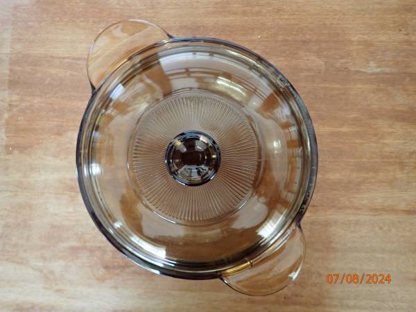 1.25 Quart Visions Round Casserole Pan with Lid in new condition Can use in freezer, microwave, oven and stove top Has been packed in storage. Like new, has no cracks, scratches, etc.. Glass with no...