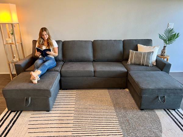 This 4-seater sleeper offers even more room, featuring two matching ottomans and a smooth roll-out pop-up sleeper design. Perfect for larger families, hosting guests, or maximizing your living room comfort.