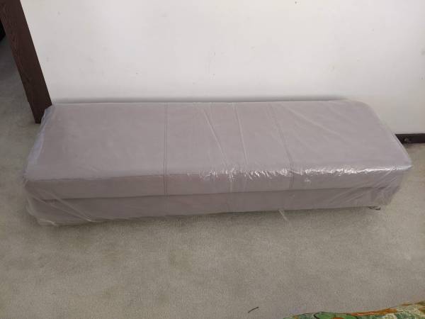 Long Ottoman x 2 available. $75 each or $130 for both. Color: Taupe Dimensions: 67.5"L x 21.25"W x 17"H