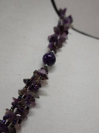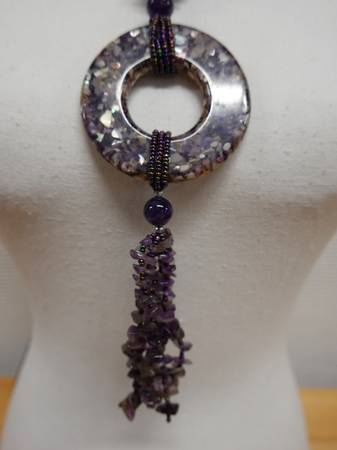 AUCTION Amethyst Necklace w/ Large Circular Pendant 36"L - $10