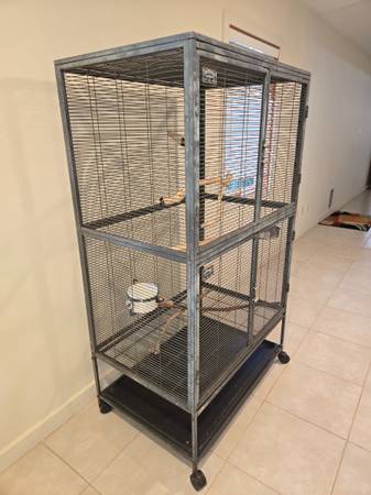 Cage is currently setup for birds, but can be used for small aninmals. Cage measures 3' W x 2' D x 5' 4" H. Asking $150. Email if interested.