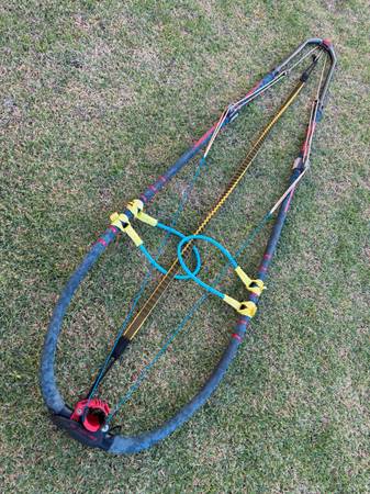 Severne Foil Glide 6.0m Windsurf Sail, Sevene Enigma 160cm to 210cm Carbon Boom, NoLimitz 430cm Skinny 90% Carbon Mast and Chinook Tall 46cm Carbon Europin Mast Extension. This is the rig that I used in heavy wind on my IQFoil and it is a dream to sail. The sail is camber induced and is cut specifically for windsurf foil boards. The boom is full carbon and the grip is in perfect condition. The boom also includes a ball bearing adjustable outhaul system, a bungee uphaul and 24 inch Dakine fixed harness lines. This equipment is extremely modern and works very very well. The Chinook tall mast extension is the perfect size to rig with the 530cm mast for this sail and is full carbon with a Europin attachment point. Bags are included for the sail and mast. This equipment has always been rinsed dried and has been meticulously cared for. Please don’t hesitate to reach out if you have any questions. Thank you for looking